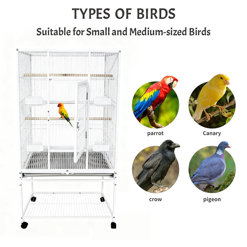 Large Metal Wire Parrot Cage Modern Tall Bird Cage Villa with Tray & Wheels