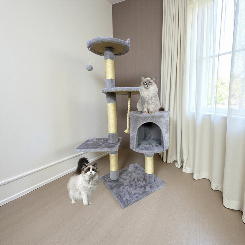 2. Comfort and Fun Combined: Equipped with a thickened semi-enclosed plush cat nest, it provides soft hiding spaces for cats. Combined with fun hanging hairball, fun lanyard, and sisal scratching posts, it creates a multi-functional entertainment area for scratching, playing, and resting, meeting the daily behavioral needs of cats.
