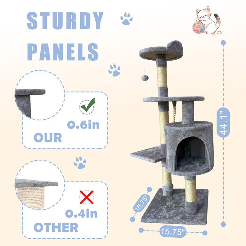 3. Stable Structure: The base design provides excellent load-bearing capacity and anti-tipping stability, ensuring the cat tree is safe and reliable in all situations and providing solid support for active play.