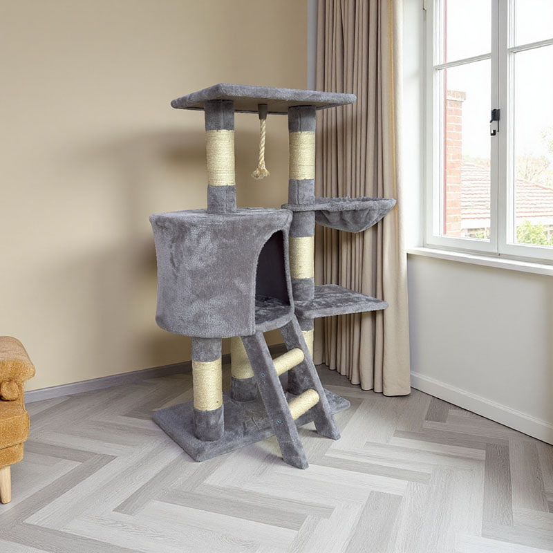 1. Scientifically Designed Layered Layout: Independent sisal ladder and stepped platform layouts are layered to match the cat's activity habits, and both kittens and big cats can get on and off easily.