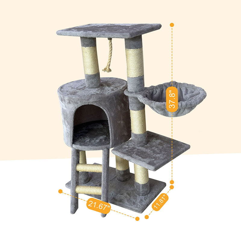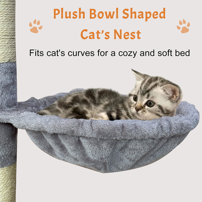 2. Comfort and Fun Combined: Equipped with a thickened semi-enclosed plush cat nest, it provides soft hiding spaces for cats. Combined with a hammock, fun lanyard, and sisal scratching posts, it creates a multi-functional entertainment area for scratching, playing, and resting, meeting the daily behavioral needs of cats.